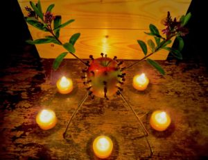 A South Wales tradition, this involved the creation of a peculiar object. An apple or orange is positioned on a tripod of twigs, studded with cloves, and a sprig of bush was inserted into the top. It would either be left within the home or given as a gift, and was accepted as a token of good crops in the next year.